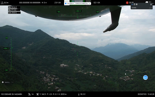 嫌疑人潜逃的峡谷地区,四面环山,地形复杂,通讯信号有遮挡。面对严苛的起飞条件,傲势现场飞行人员迅速做出判断,选择视线较为通视的峡谷一侧作为起飞点,从峡谷中直飞爬升到高度后进入任务航线。XC-25展现了极强的稳定性,任务期间持续的降雨以及5级瞬时侧风也没有阻碍空中搜索任务的顺利进行。