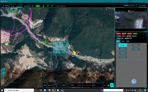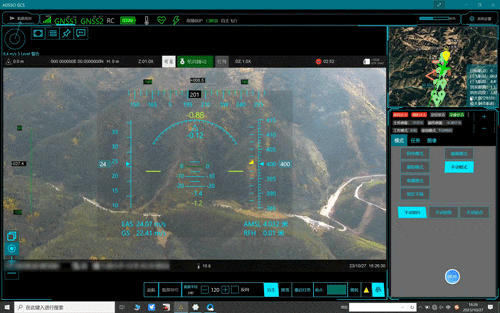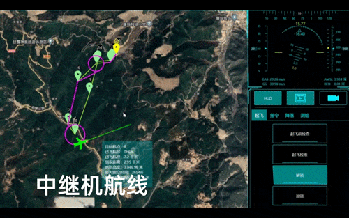 此次测试中,侦测场地距离起降点超过10km,且两地之间有高山遮挡,存在信号阻挡,不具备通视条件。傲势派出两架XC-25无人机执行任务(分别为中继机和任务机),将灾区的数据信息中继转发到地面控制站,实现复杂地形和非通视情况下通信数据的传输。