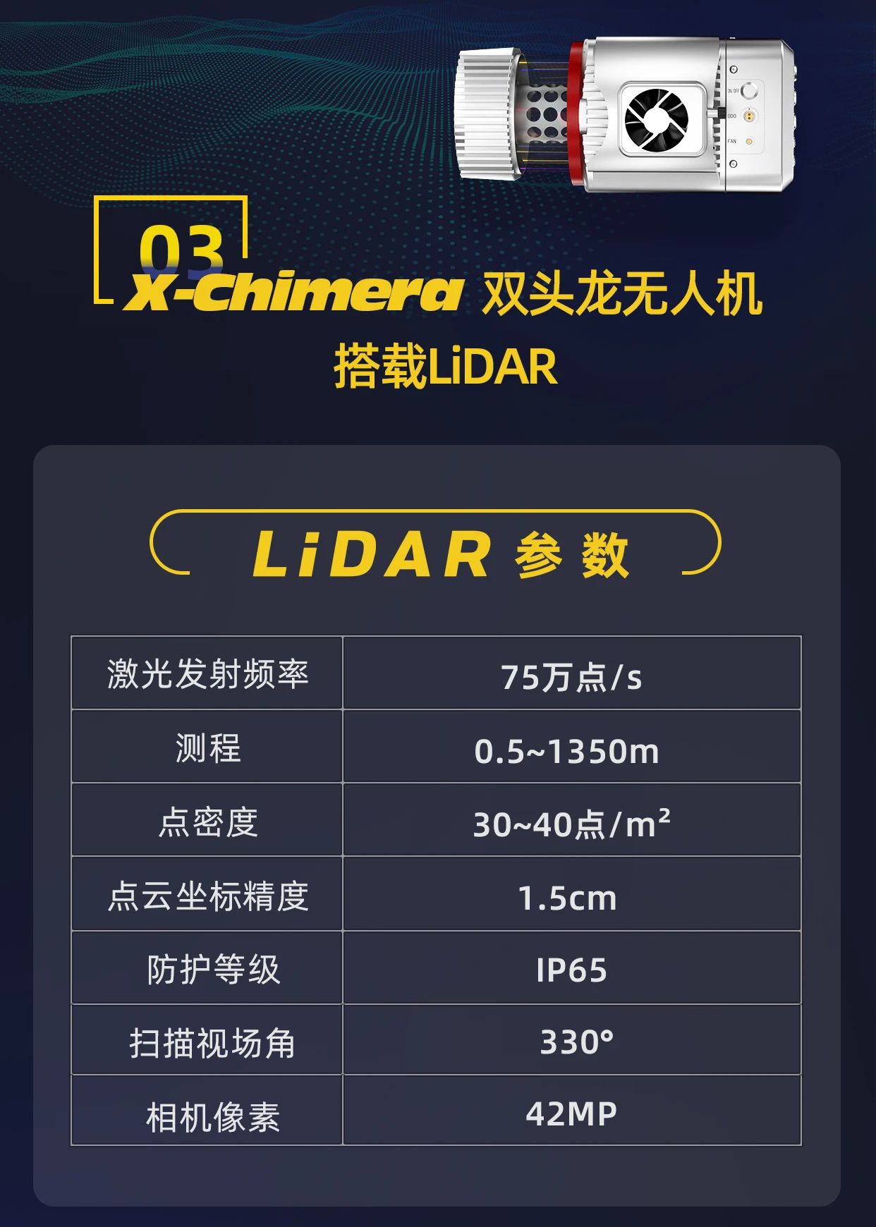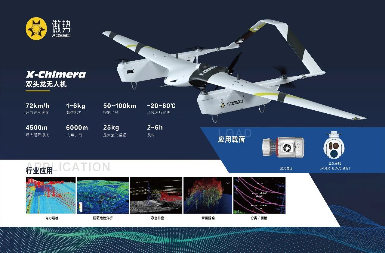 激光雷达那么贵,搭载平台的安全可靠得放在第一位。傲势X-Chimera双头龙无人机采用纯电动力,换装便捷,系统可靠性强,时刻有保障。
