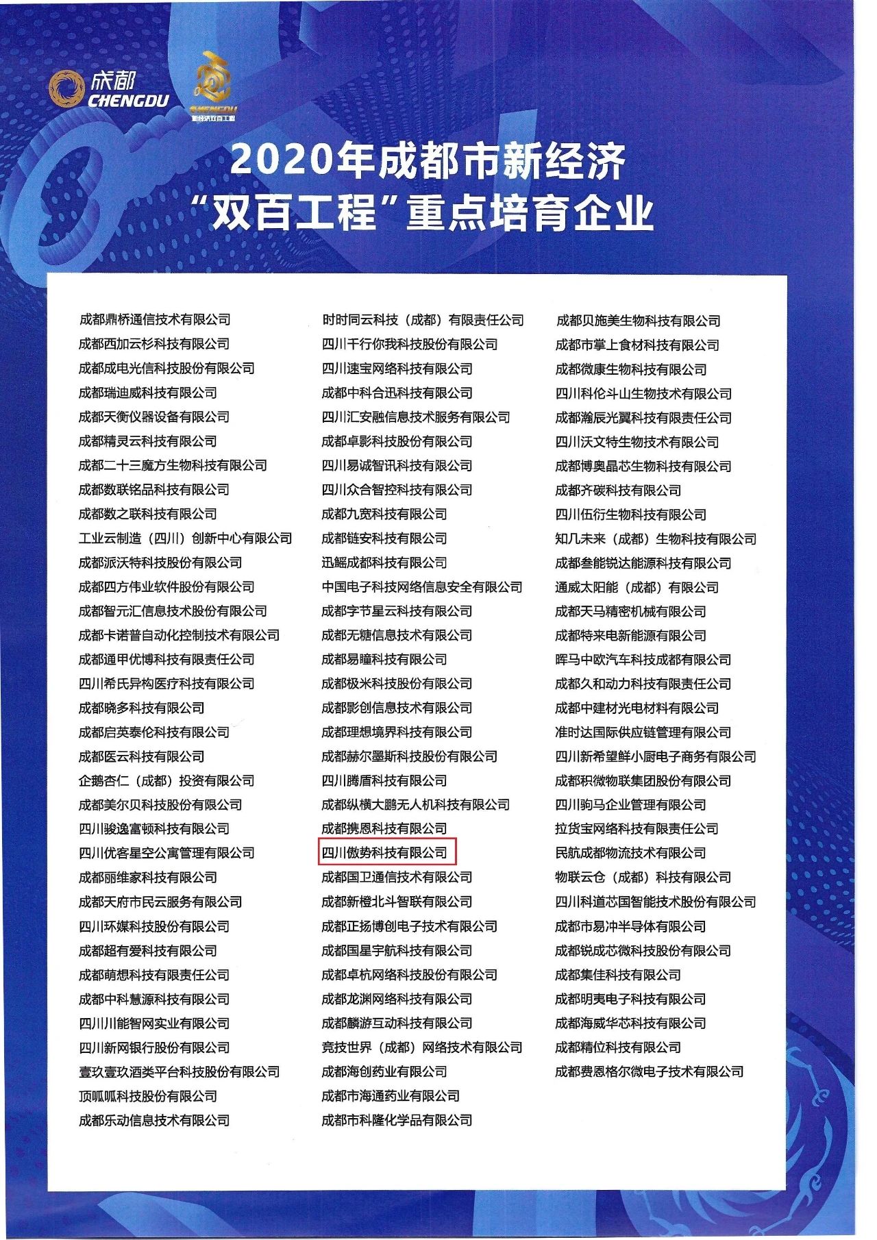 2020年成都新经济“双百工程”名单公布,傲势连续三年再上榜