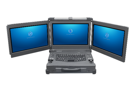 三屏无人机地面站,集成了工业级PC系统和数据链远程控制系统,加固三防终端